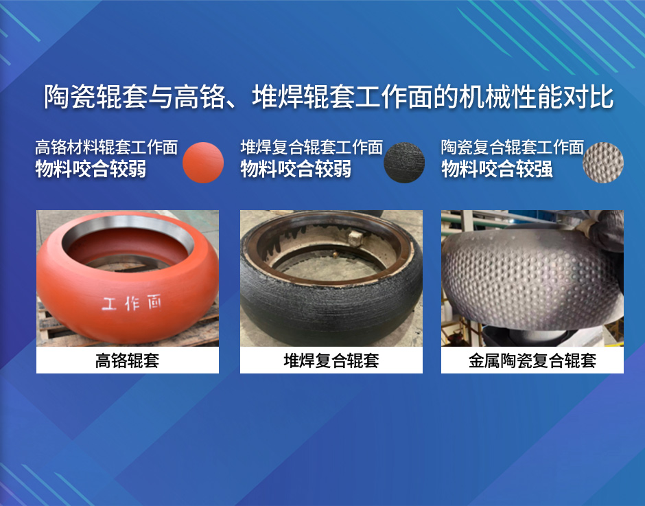 - 傳統(tǒng)堆焊/高鉻輥套HV硬度普遍約為650,而陶瓷合金HV硬度可達(dá)1850-2100,新材料帶來(lái)傳統(tǒng)材料的2.0-3.0倍的使用壽命.更長(zhǎng)的單次使用周期,為企業(yè)減少停機(jī)、拆卸、人工、耗材、配件等維護(hù)成本。